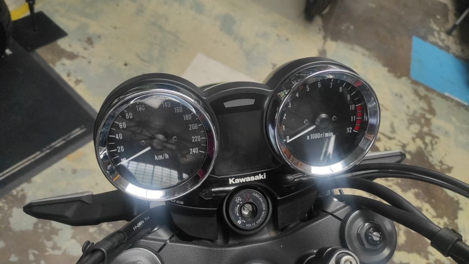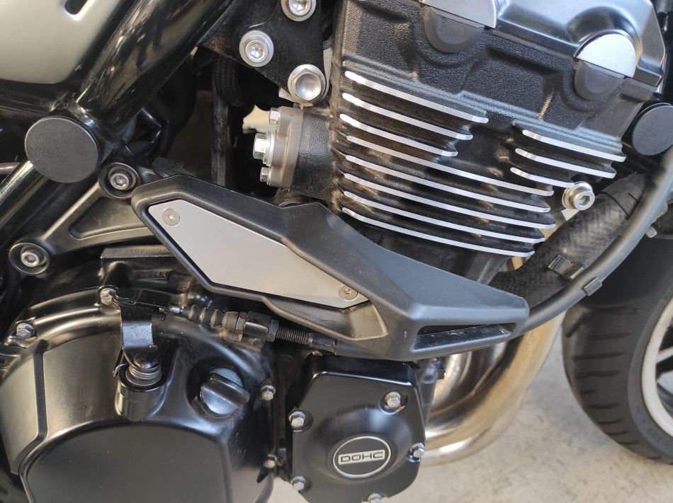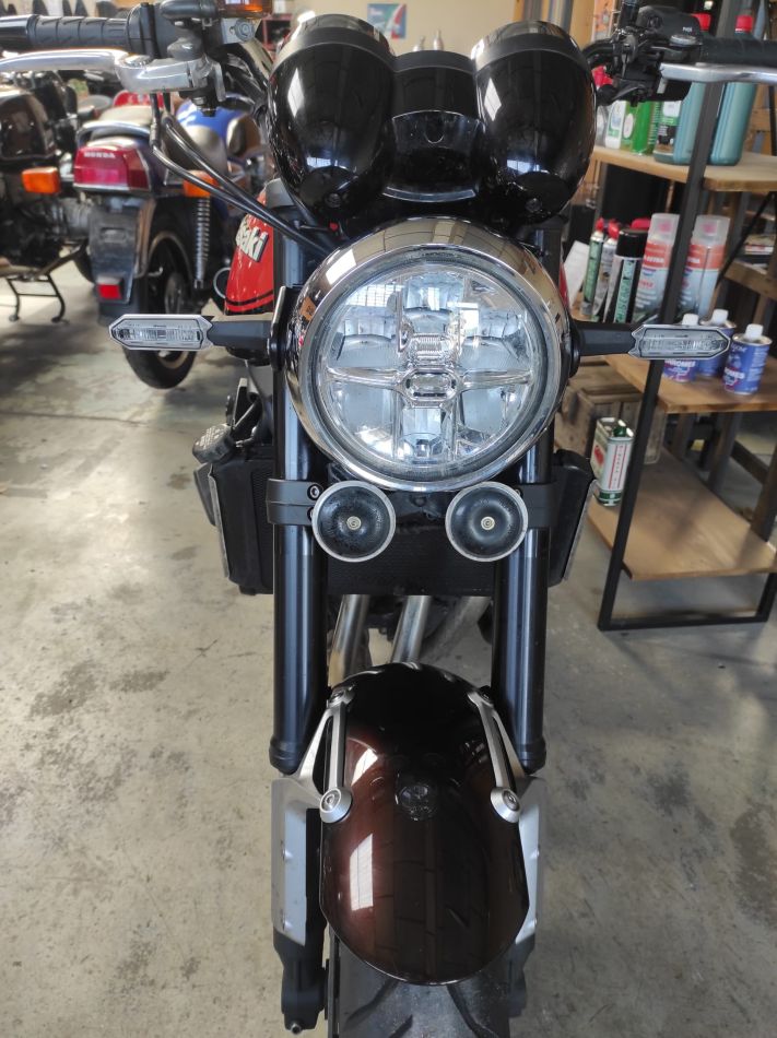 C’est une première main, équipée avec près de 2000€ d’accessoires : valves coudées pneu avant et arrière, extension garde-boue avant, 2 klaxons (chacun plus puissant que l’origine), enjoliveur aluminium tableau de bord, grille radiateur, béquille centrale, barre maintien passager, protège-carters moteur, booster plug (déport sonde de température vers l’avant pour abaisser température moteur), boitier Rapid Bike Easy (élimination des à-coups d’injection), amortisseur Bitubo Monoshock bombonne séparée (avec réglage précharge du ressort hydraulique,